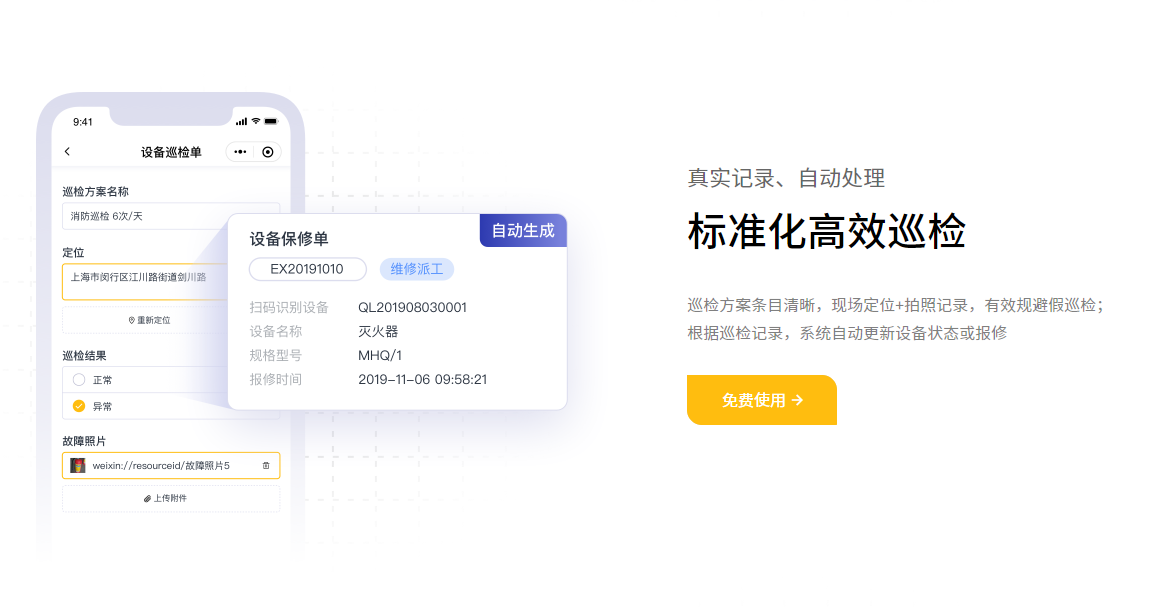 您当前浏览的文章:《设备巡检报修系统》由小程序开发服务品牌洋意梅轩整理发布。