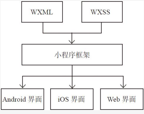 WXML (WeiXin Markup Language)是框架设计的一套标记语言,用于渲染界面,WXML的渲染原理和React Native思路一致,通过一套标记语言,在不同平台被解析为不同端的渲染文件,如图所示。